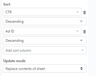 Unarguably one of the best ways to measure and optimize the CTR of all your Google ads at once is to export them to Google Sheets and set up automatic daily updates, based on which you can enhance the ad copies of your headlines and descriptions.